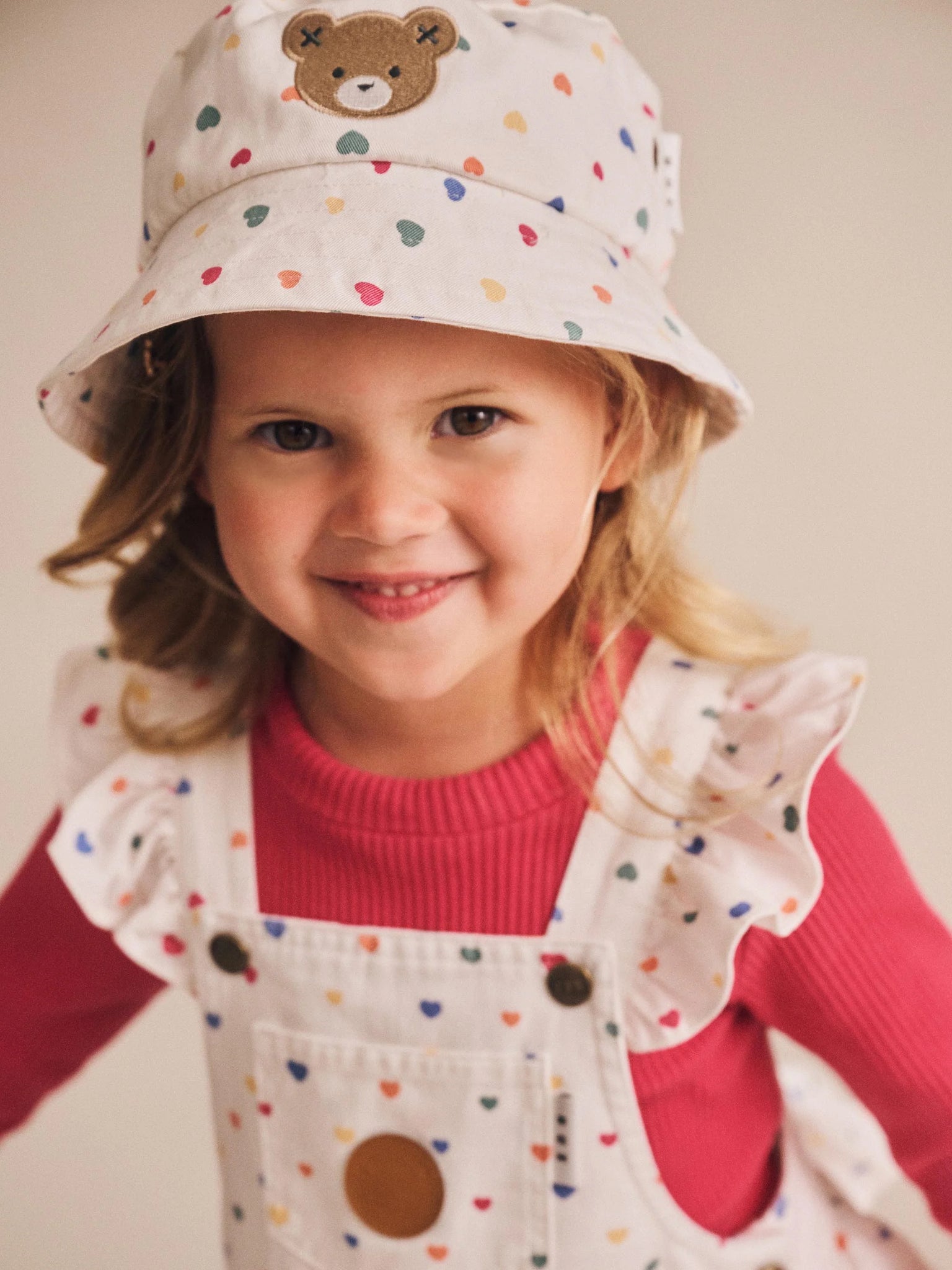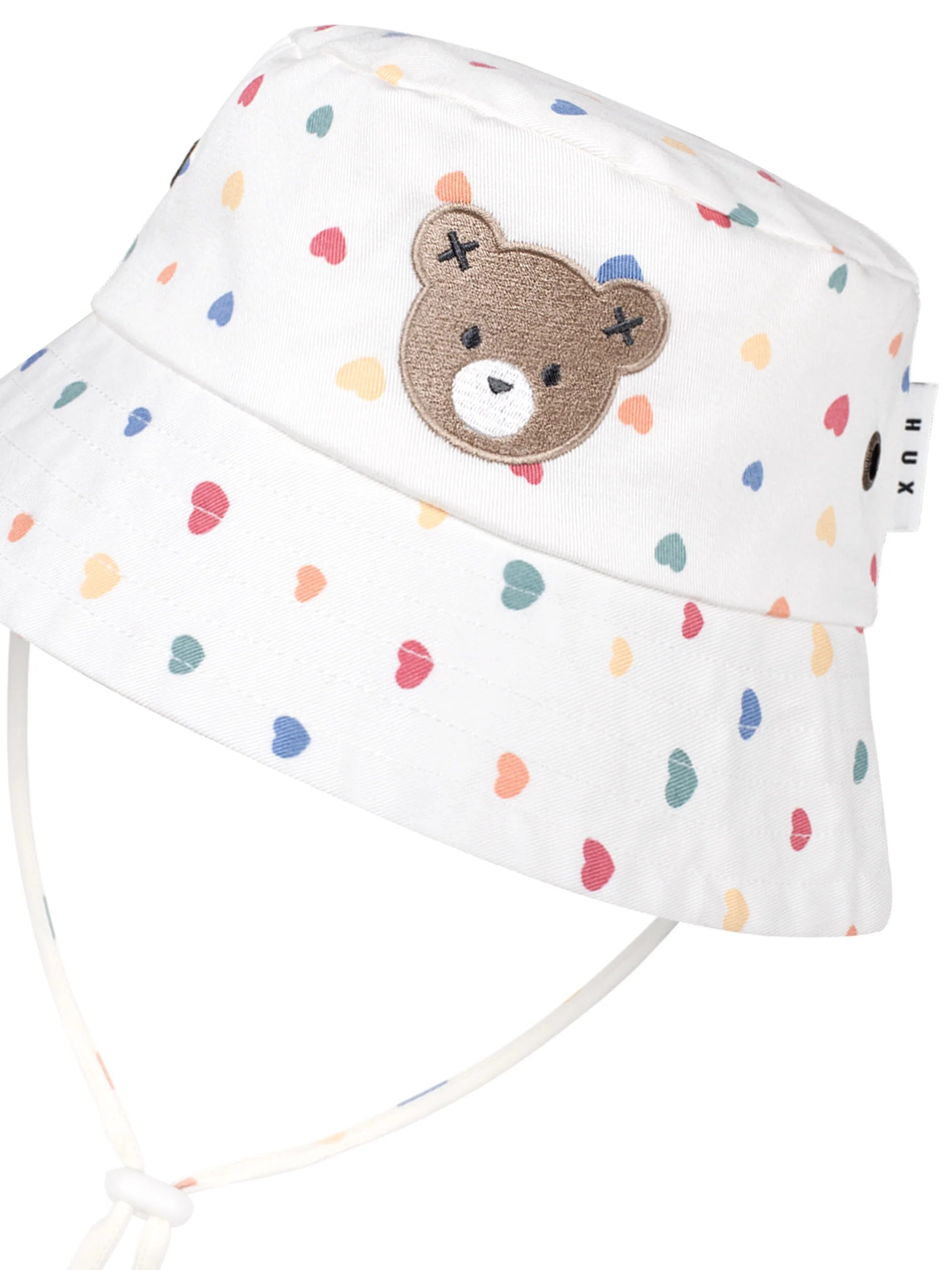 A hat they'll actually want to wear. This vanilla sprinkles bucket hat is made from breathable cotton twill. It features a Huxbear embroidery and wider brim for extra sun protection.