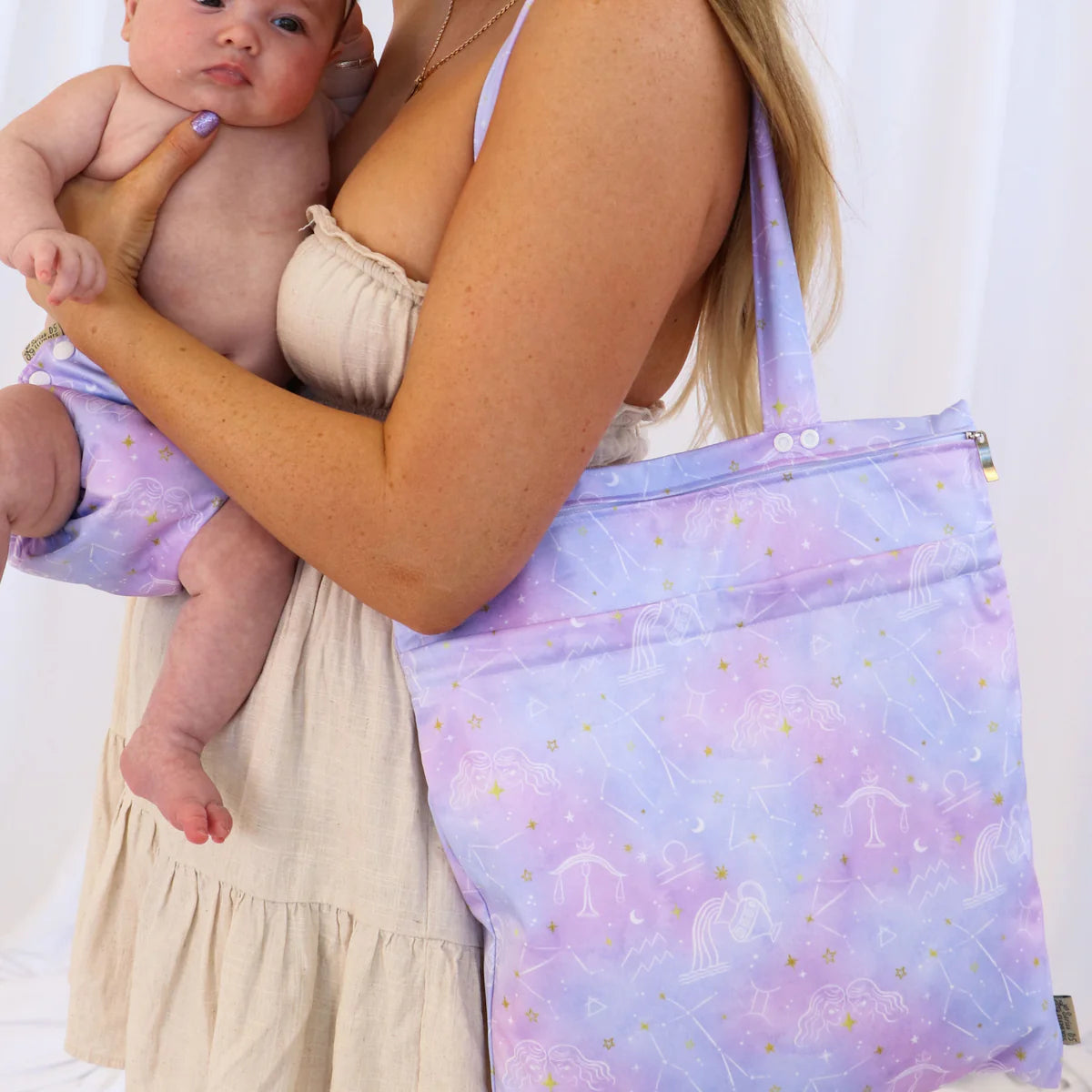 An absolutely ESSENTIAL accessory that makes it stress-free for you to use cloth nappies when you're out and about, our Double Pocket Premium Wet Bags are double lined to offer water resistant (and smell resistant) storage for up to 8 x modern cloth nappies.