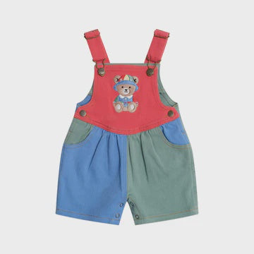 A classic pair of 90s short overalls in fun colour block denim. They feature adjustable straps for comfy wear, chest, side and back pockets perfect for stashing treasures in and a classic Huxbear embroidery. Baby sizes include stainless steel crotch snaps for easy dressing. Style them alone or over a tee.