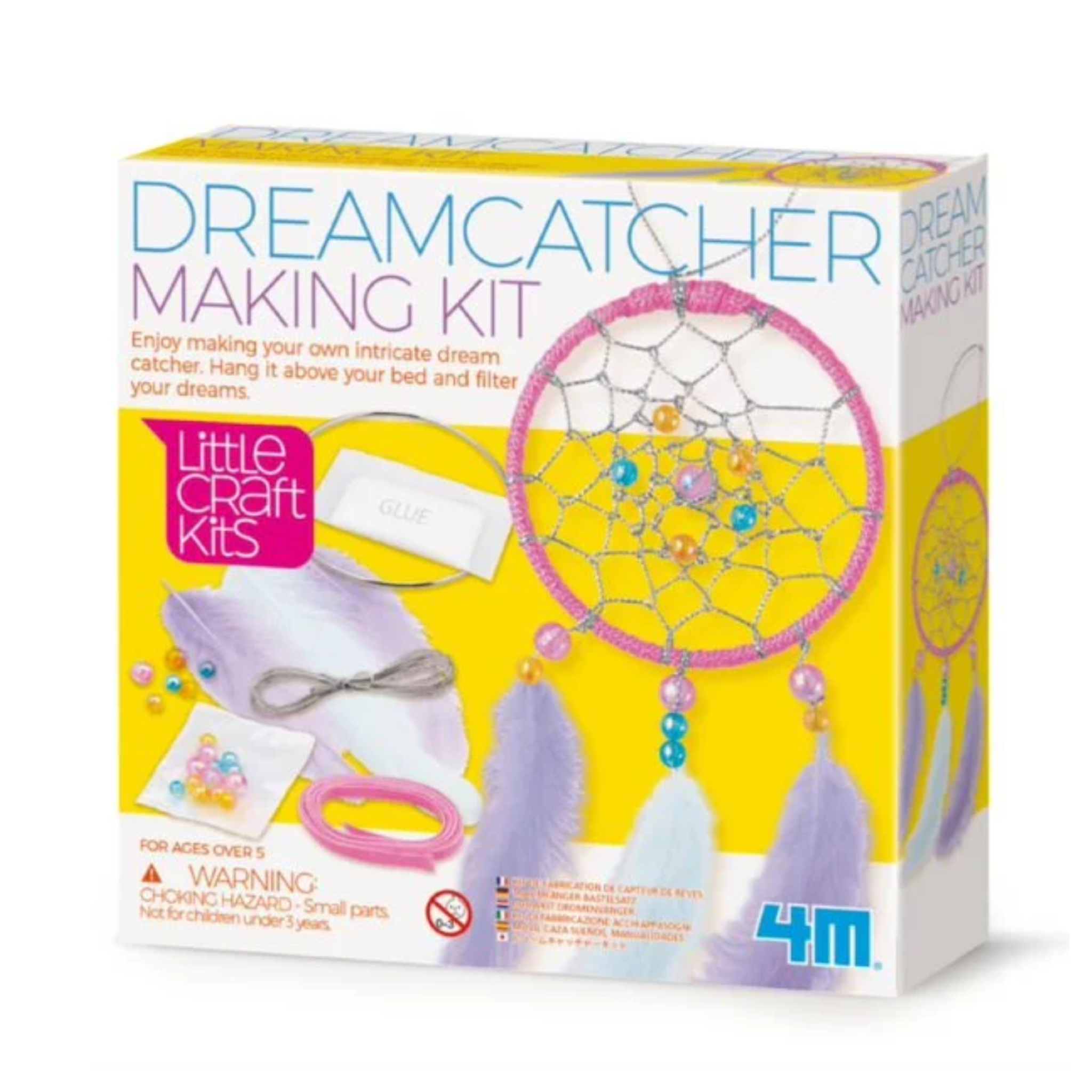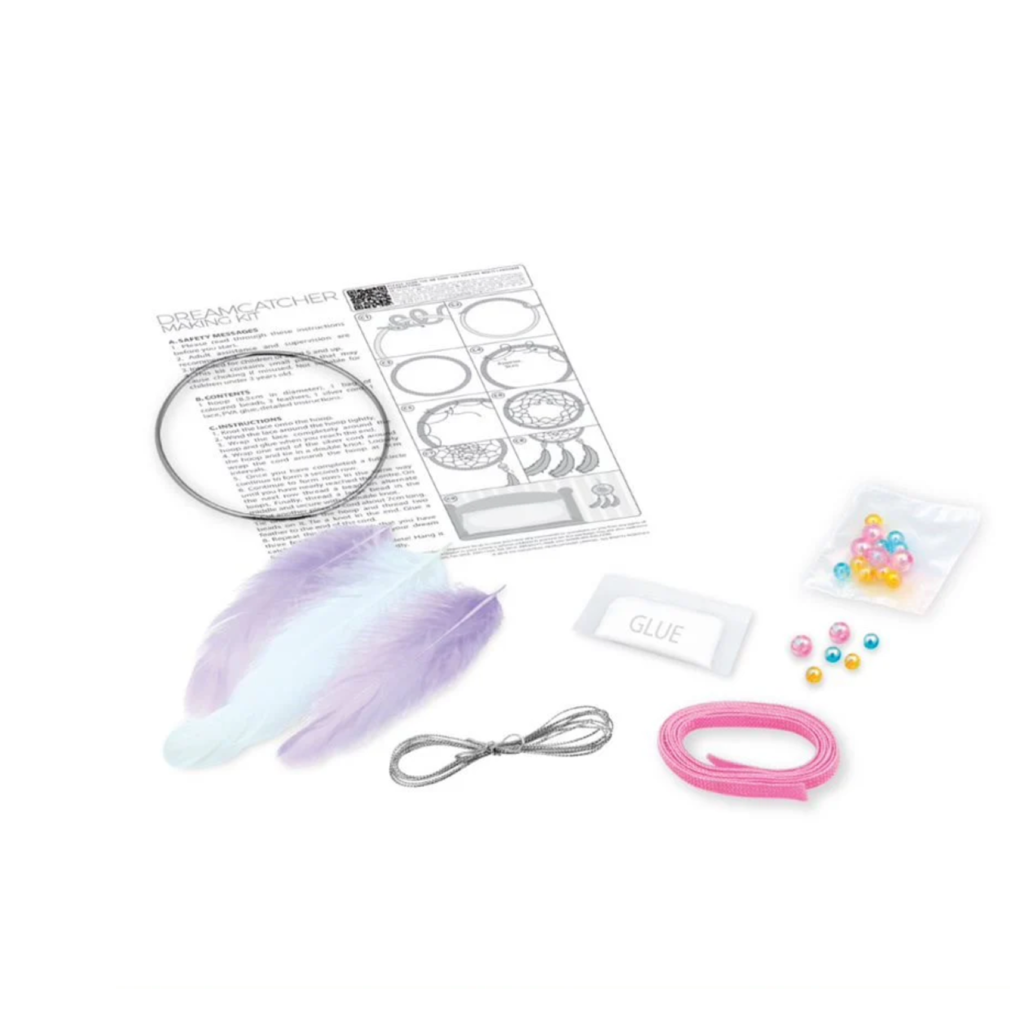 Contains 1 hoop (8.5cm in diameter), 1 bag of colour beads, 3 feathers, 1 silver cord, 1 lacing, 1 white glue and detailed instructions.