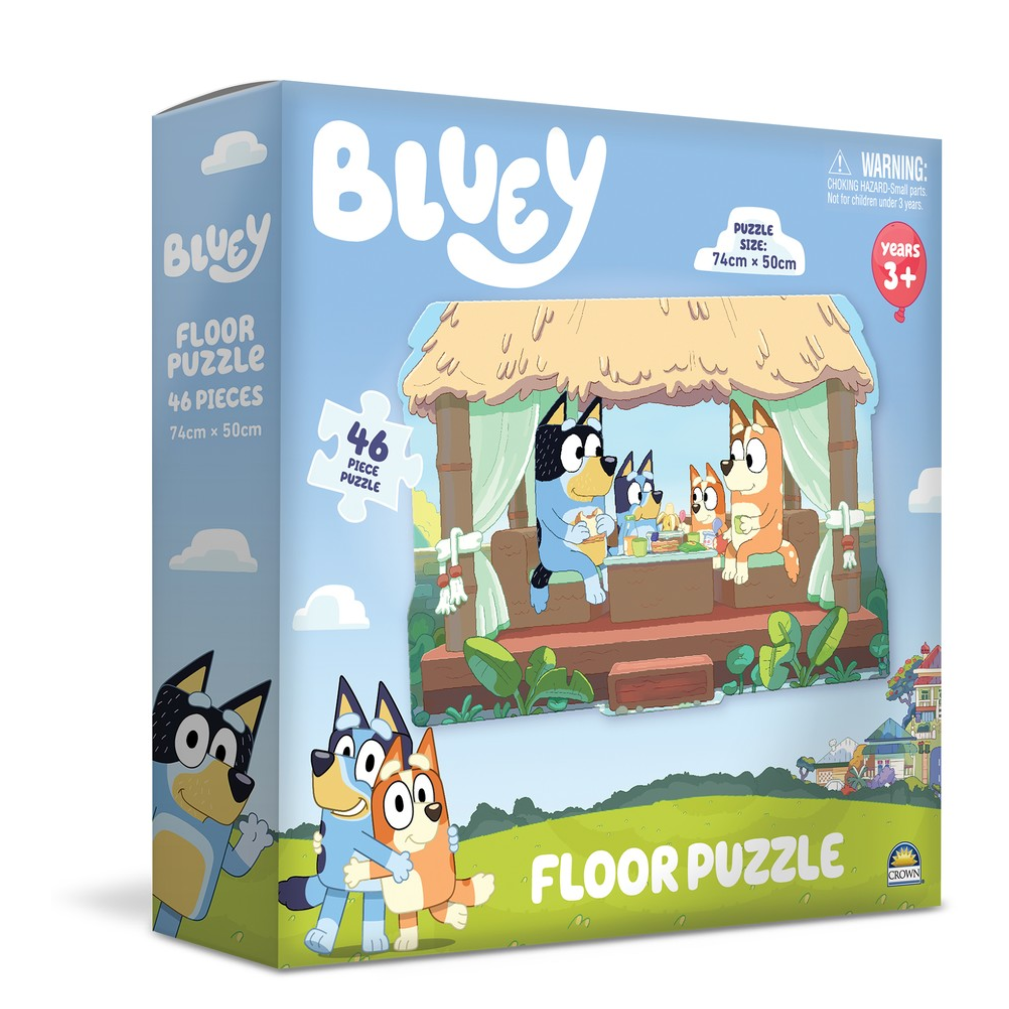 This huge Bluey Floor Puzzle features the cute Aussie pooches from the ABC hit show. Starring Bluey, Bingo, Bandit and Chilli, this adorable 46 piece shaped puzzle is easy to assemble with large sized pieces ideal for small hands. 91.4cm x 60.9cm this enormous puzzle is a sight to see! Use the box as storage so you can assemble over & over again.