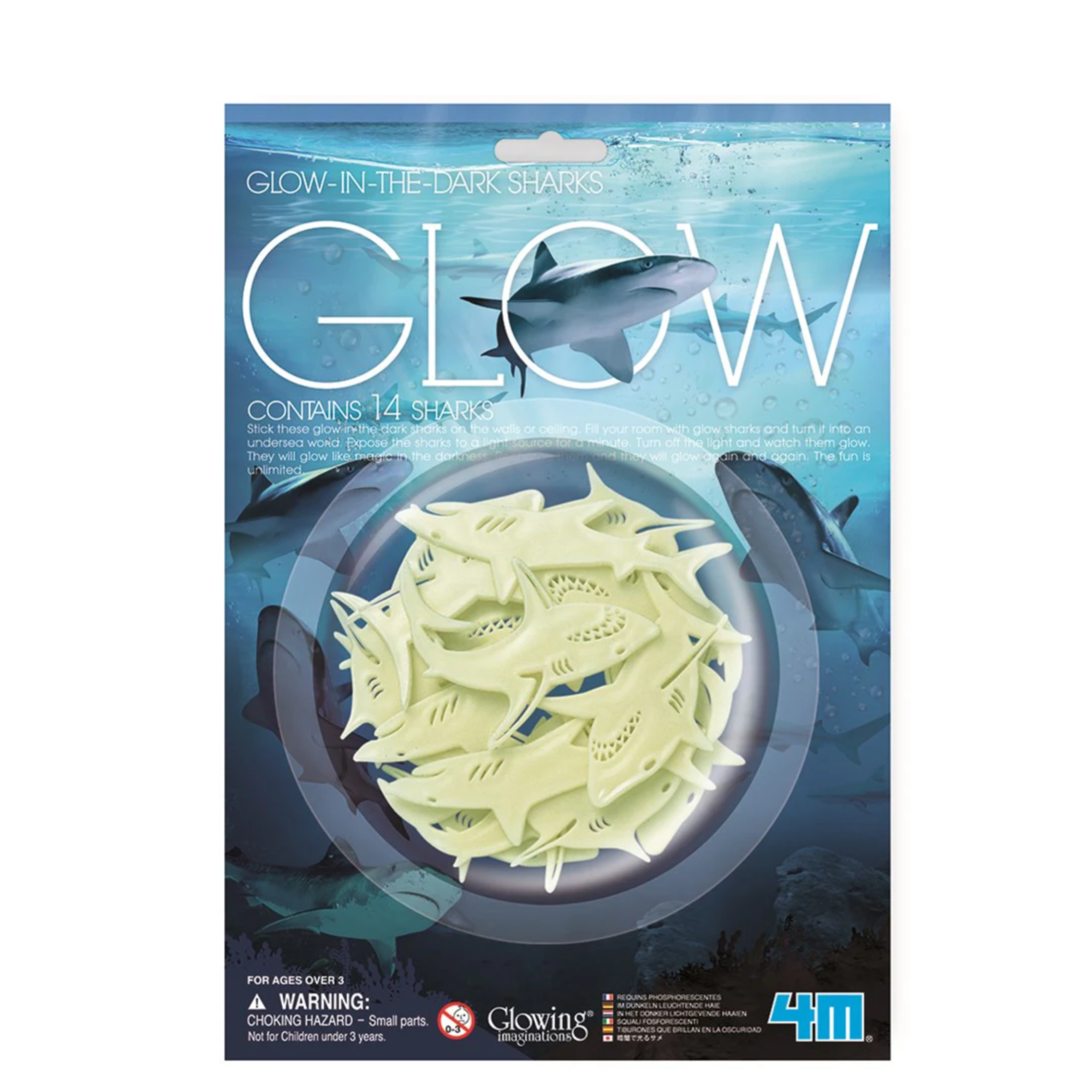 Stick these glow-in-the-dark sharks onthewalls or ceiling. Fill your room with glow sharks and turn it into an undersea world. Expose the sharks to a light source for a minute. Turn off the light and watch them glow.