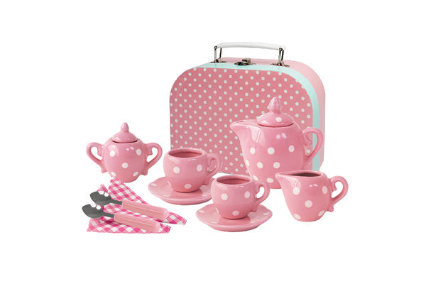 Porcelain Tea Set - Pink Polka Dot 13pc