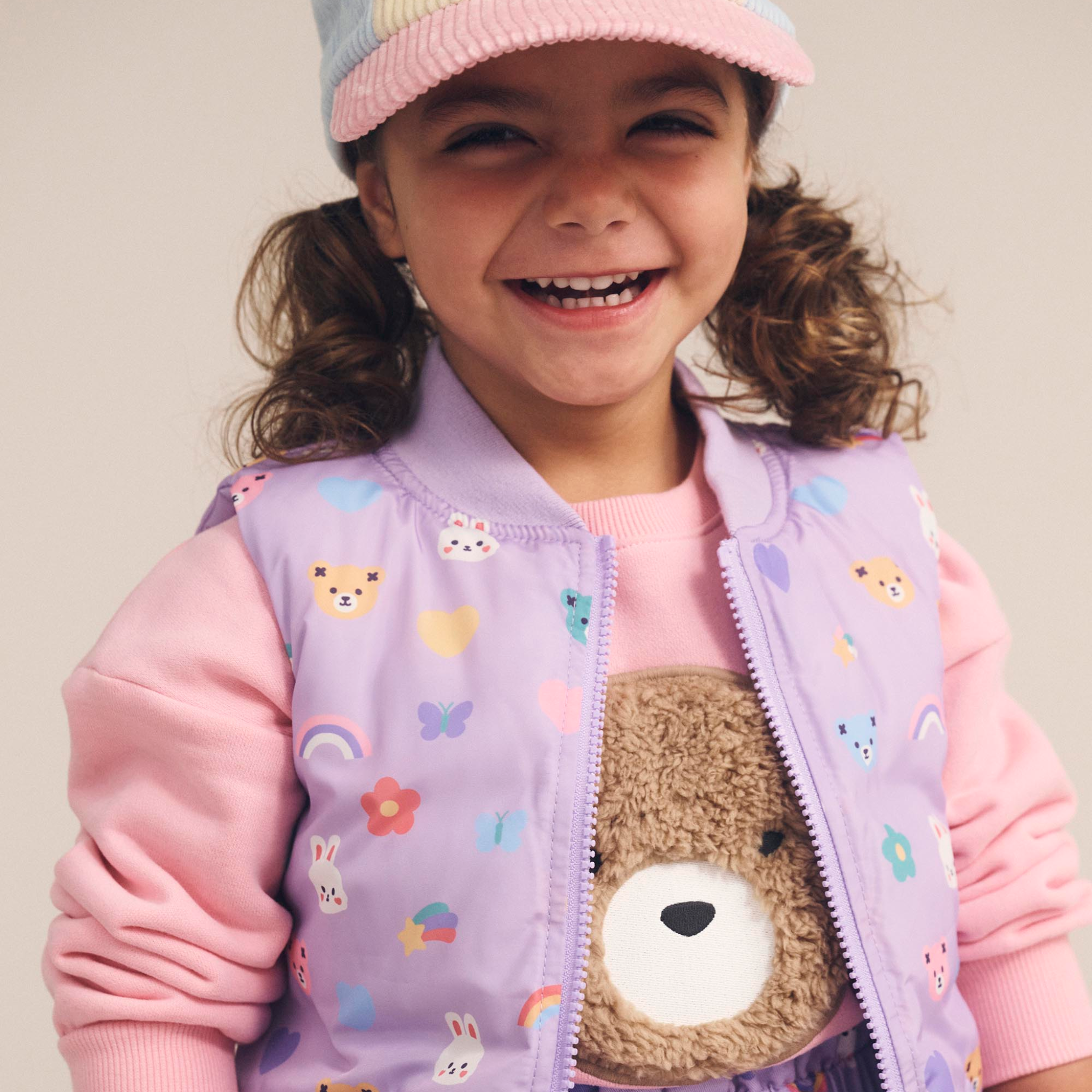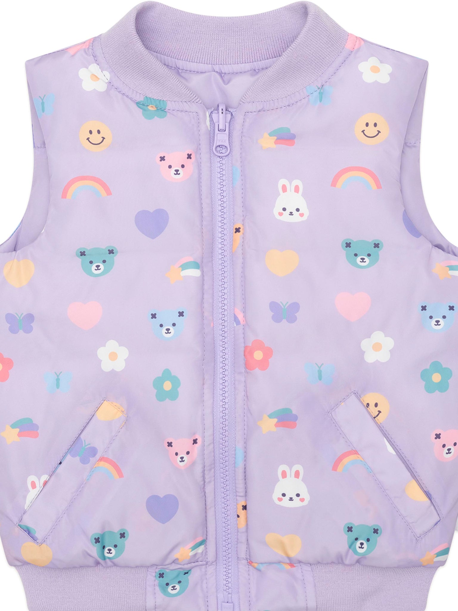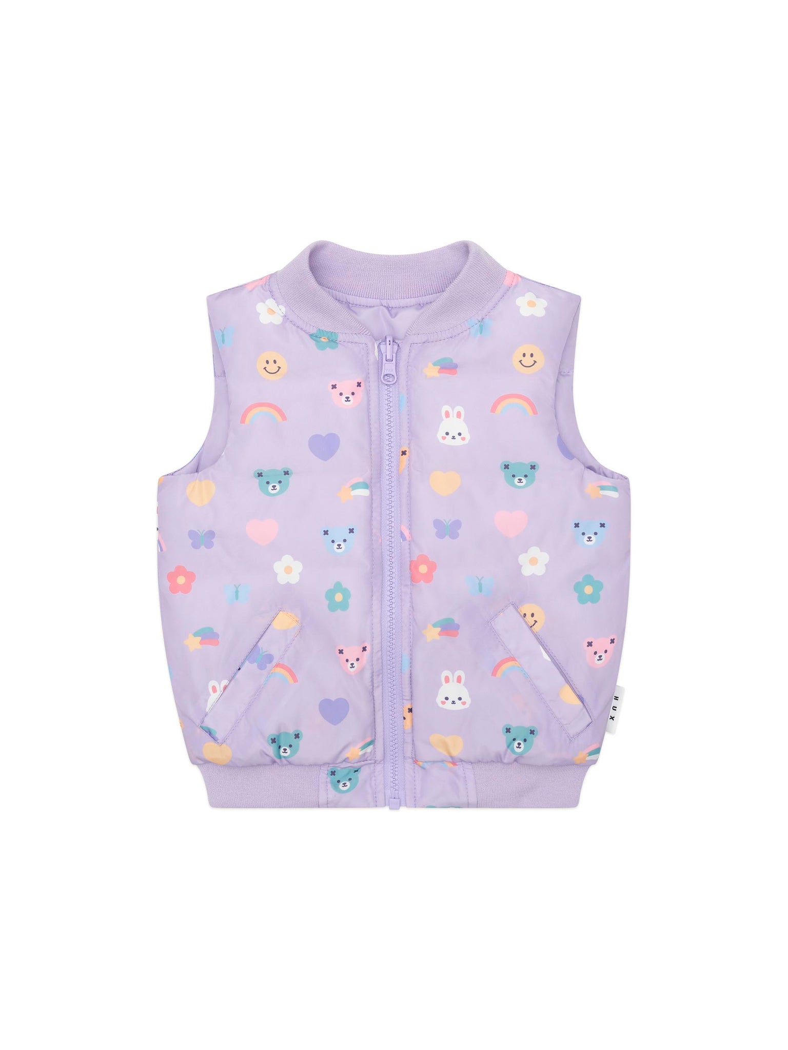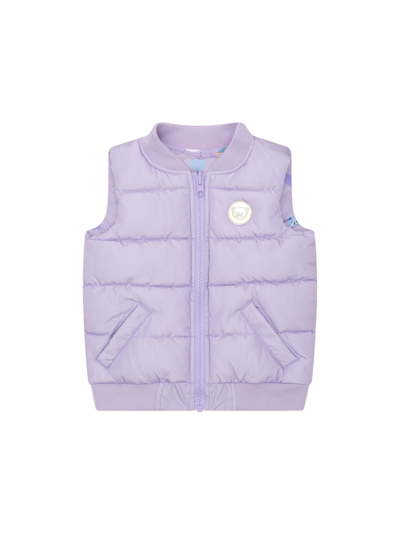 This reversible puffer vest is two looks in one. On one side, have fun with our custom Huxmobile print. On the other, stay cool in classic midnight blue. Featuring front pockets and an easy front zip, this versatile piece is consciously crafted from Global Recycled Standard (GRS) recycled polyester and is water repellant on both sides.