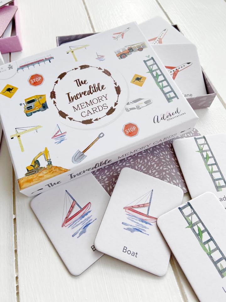 The Incredible Memory Card Game comes in a beautiful matt white hardcover box with charcoal foil on the lid making it that extra special. The beautiful artwork has been illustrated by Gold Coast Artist Lauren Hakavalu (and matches our stunning Incredible Puzzle).
